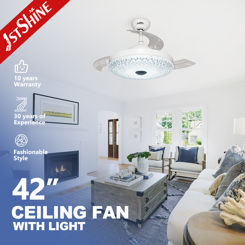 의철회 가능한 아크릴 블레이드팬이 켜지면 자동으로 확장되고 꺼지면 후퇴하여 깨끗한 사다리 모양을 유지합니다.크리스탈 스타일의 아크릴 램프 쉐이드빛의 확산을 향상시키고 모든 인테리어에 고급스러운 터치를 제공합니다.