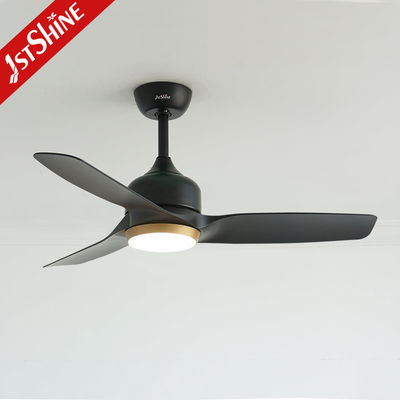 This contemporary fan features a striking Matte Black finish across the body and the three aerodynamically designed ABS blades, offering a bold, minimalist look. A subtle Gold Accent ring surrounding the integrated light adds a touch of modern luxury, making this fan a focal point in any room.
