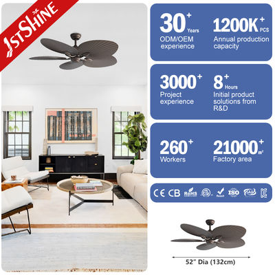 Bring a touch of nature indoors with this 52-inch ceiling fan, designed to combine tropical aesthetics with modern performance. Its five leaf-shaped ABS blades not only create a unique decorative appeal but also deliver smooth and powerful airflow—perfect for both residential and commercial spaces such as patios, cafes, villas, and resorts.